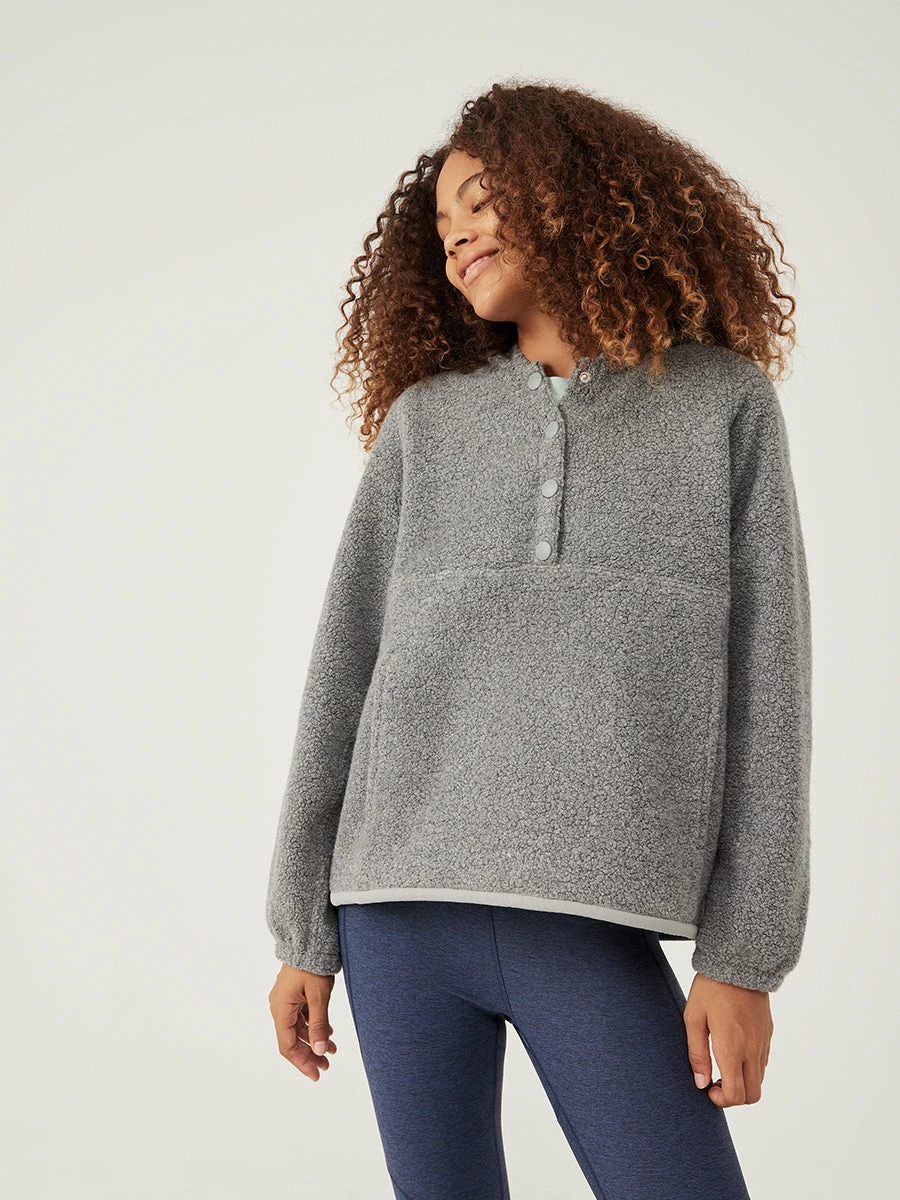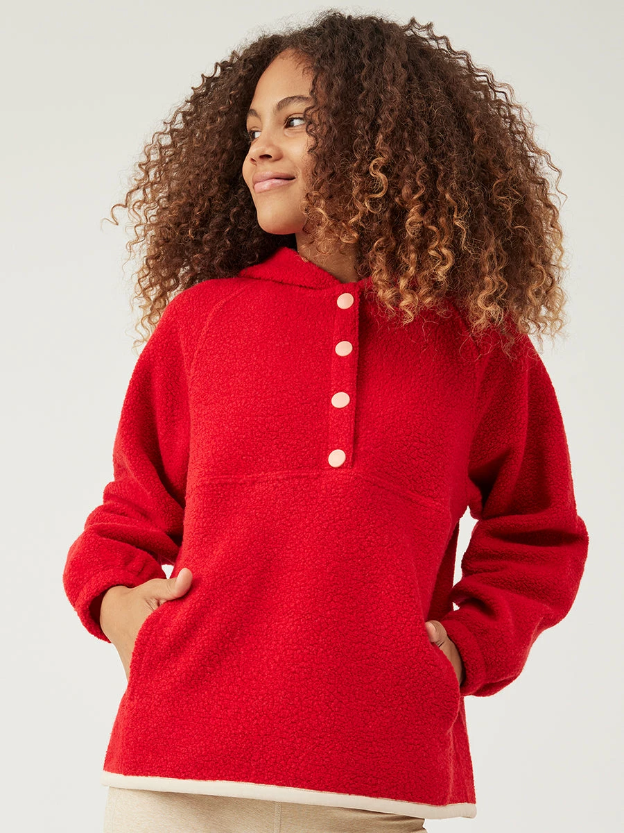 Our MegaFleece Snap Up Hoodie is a cuddly and functional layer made with 63% recycled wool. Designed with roomy pockets and a lined hood for added function.