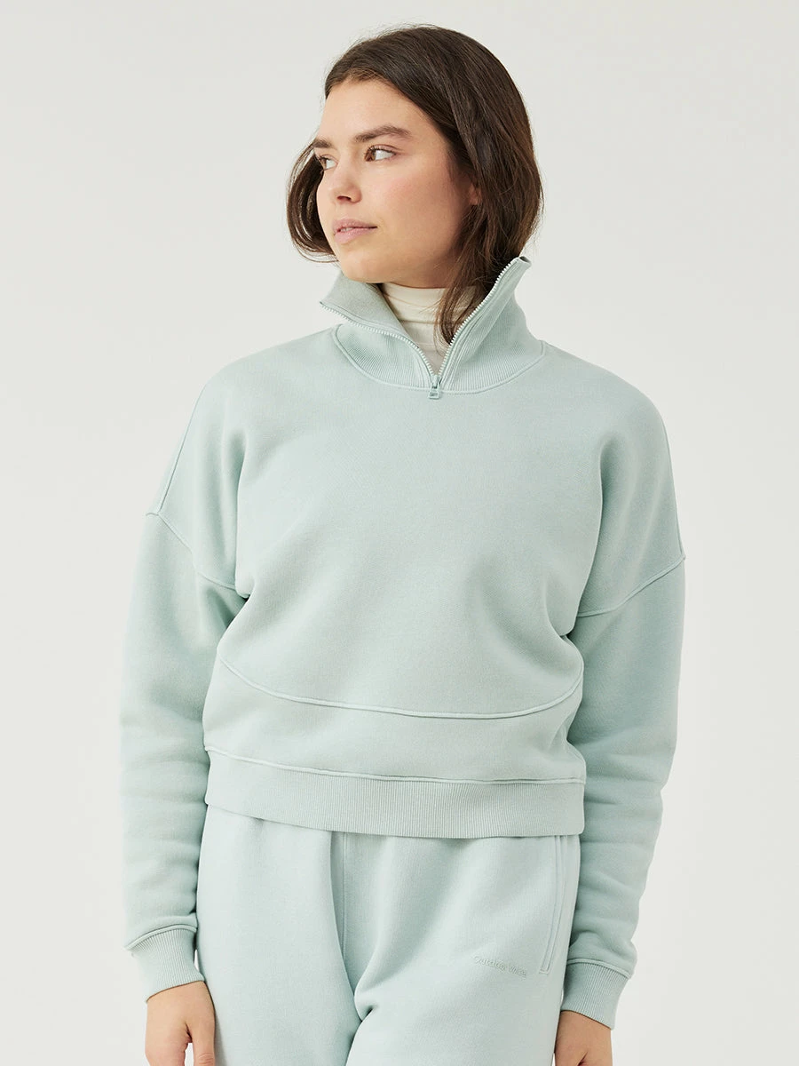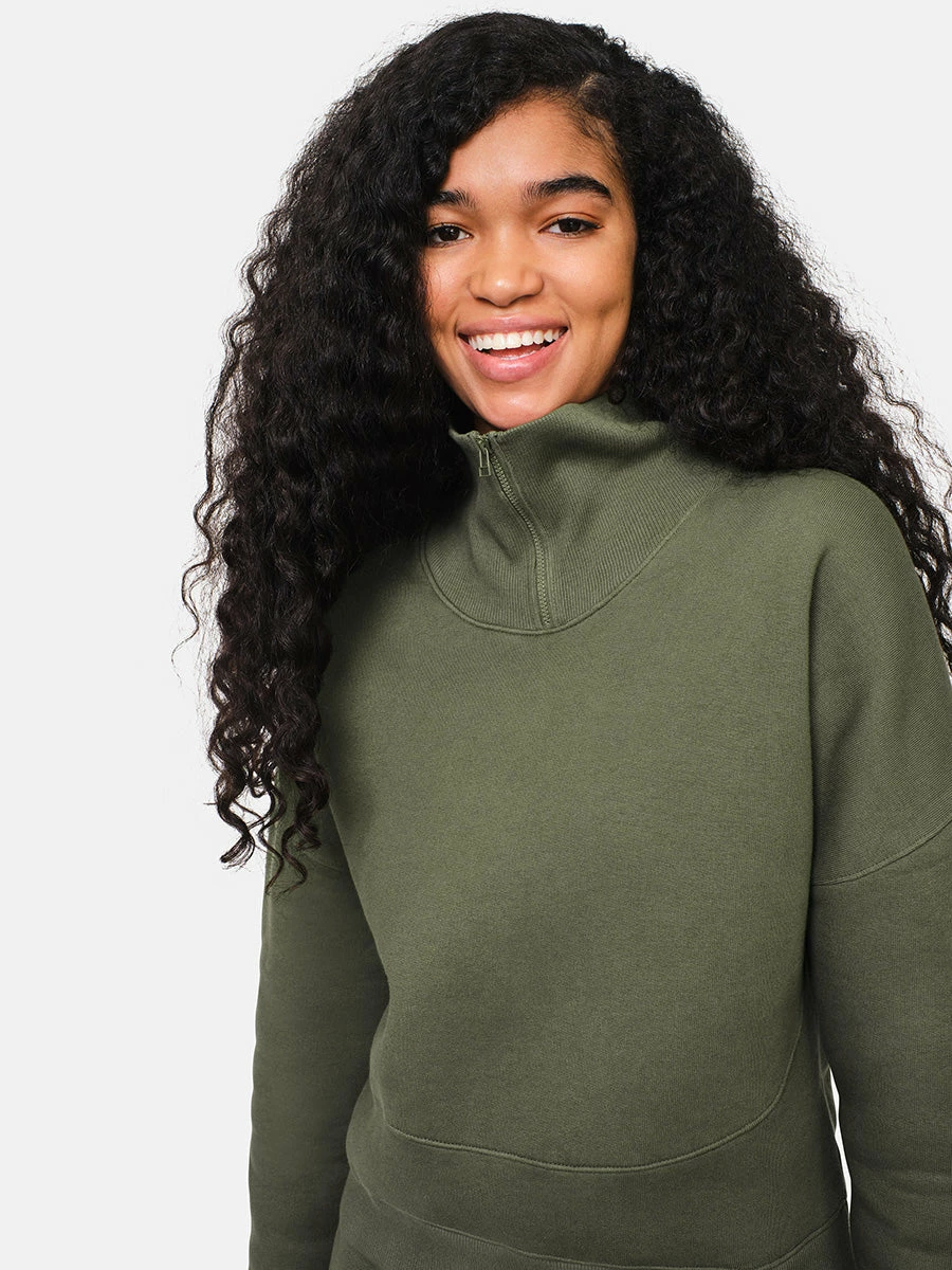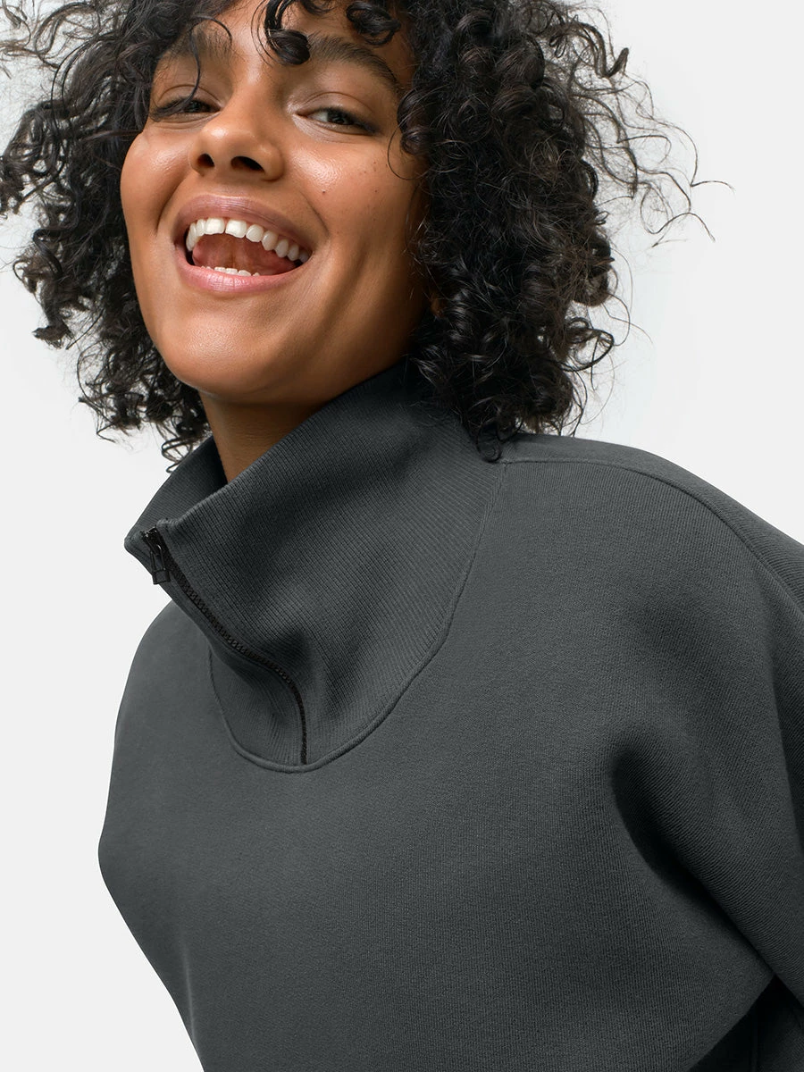 Classic heavyweight cotton ΒΌ zip with a ribbed collar and oversized fit for easy layering. Fleecy-soft on the inside and garment dyed in rich colors. Product was formerly called Nimbus Cotton 1/4 Zip.
