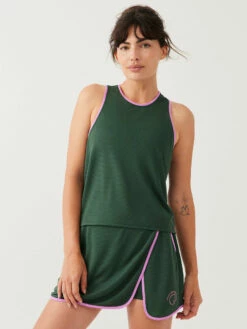 A breezy tank made from 100% post-consumer water bottles. Featuring bright, contrasted pipping for a pop of color.