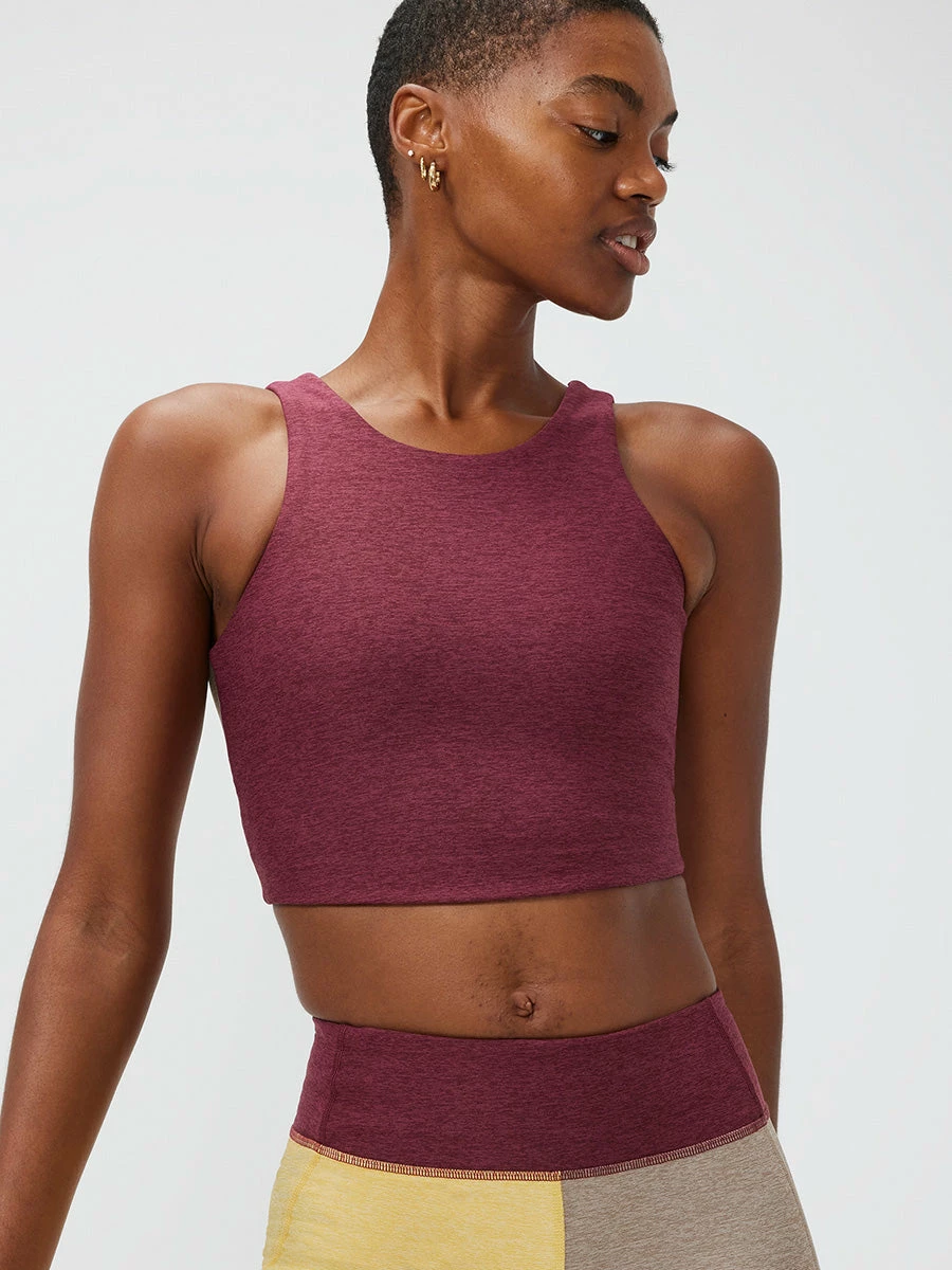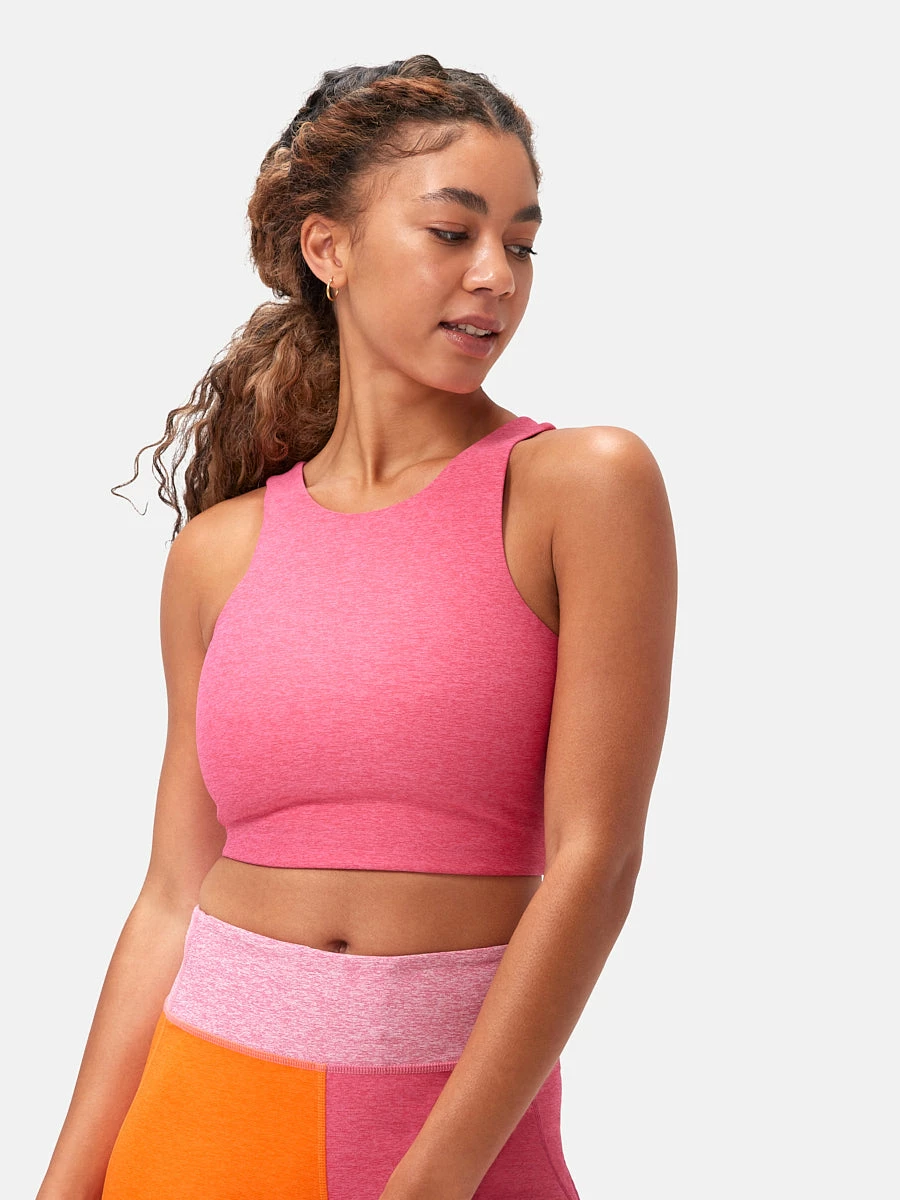 A light support V-back crop with signature colorblocking. Made in shape-sculpting Textured Compression for low intensity Recreation.